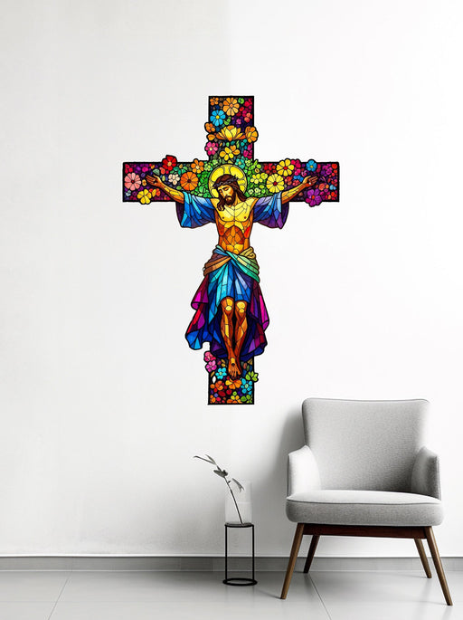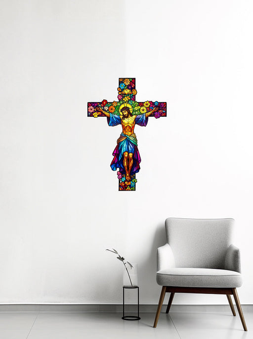 Zobrazit celý detailDřevěný barevný nástěnný obraz - Křesťanský kříž Ježíš Glassy