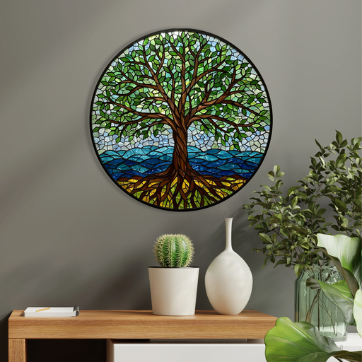 Dřevěná barevná nástěnná dekorace - Mandala Strom života Glassy
