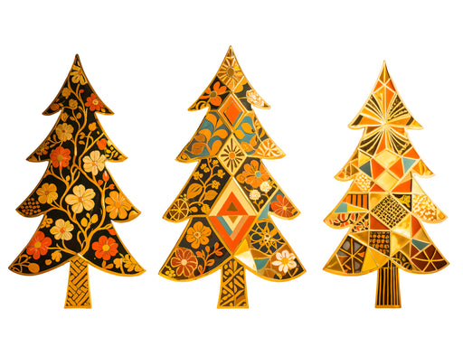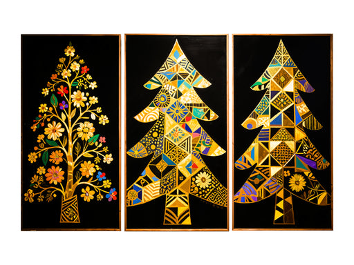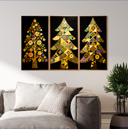 Zobrazit celý detailBarevný dřevěný obraz – 3dílný obraz – Zlaté stromy