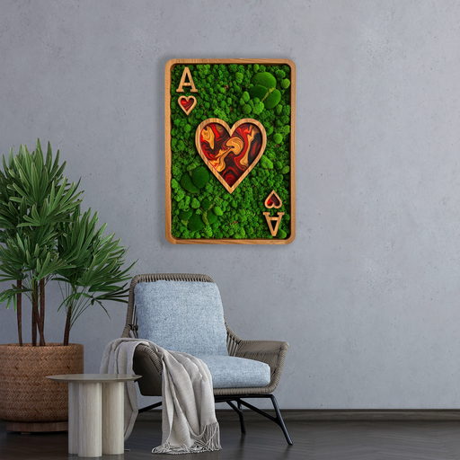 Zobrazit celý detailDřevěný měchový obraz HDF - Karta s mechovým srdcem