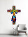 Dřevěný barevný nástěnný obraz - Křesťanský kříž Ježíš Glassy