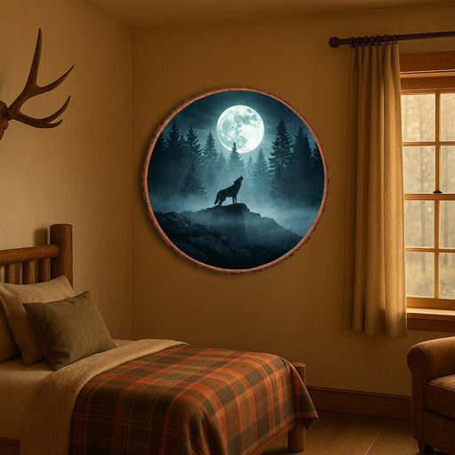 Zobrazit celý detailDřevěný obraz s UV potiskem - Vlk a Měsíc