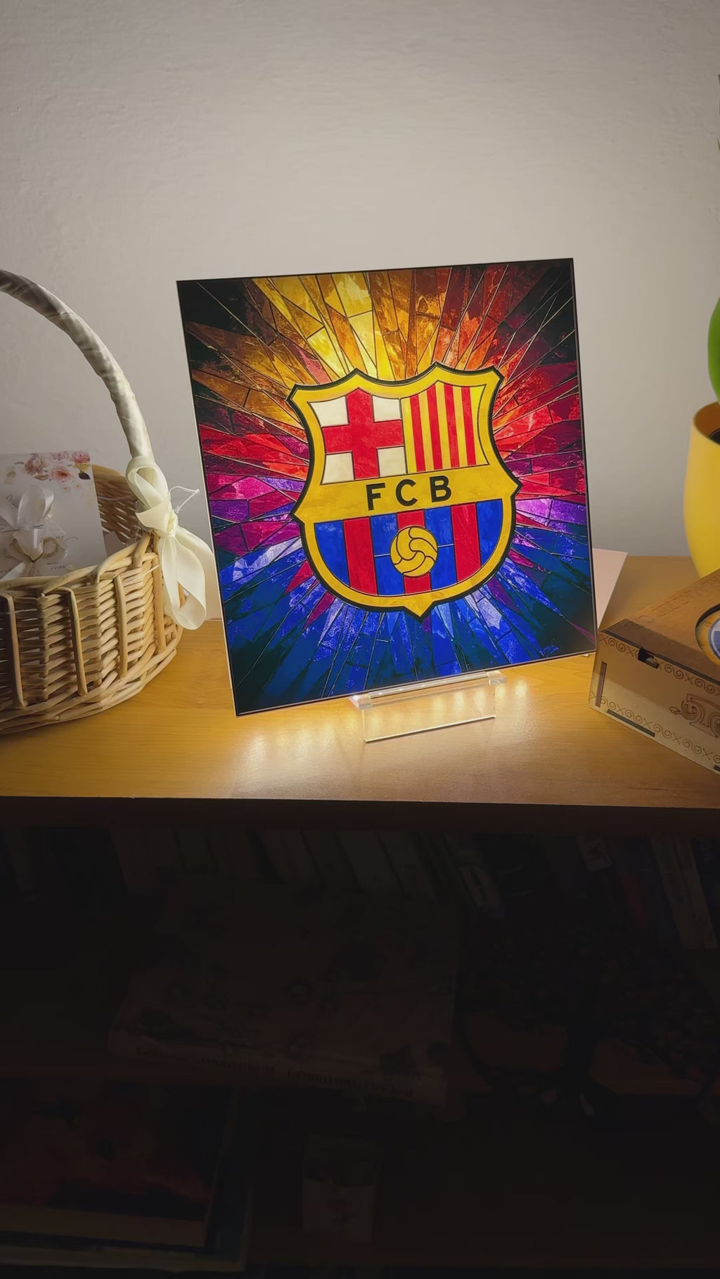 Dopřejte si jedinečný zážitek s touto stylovou stolní lampou, která potěší každého fanouška FC Barcelona! Lampa stojí na elegantním podstavci a její dominantou je ikonický klubový znak, který vyniká na moderním podkladu ve stylu tvrzeného skla (tempered glass). Precizní zpracování a čistý design podtrhují eleganci a univerzálnost tohoto doplňku. Vestavěné LED podsvícení rozjasní každý detail a vytvoří jedinečnou atmosféru ve vašem interiéru. 🔵🔴✨
