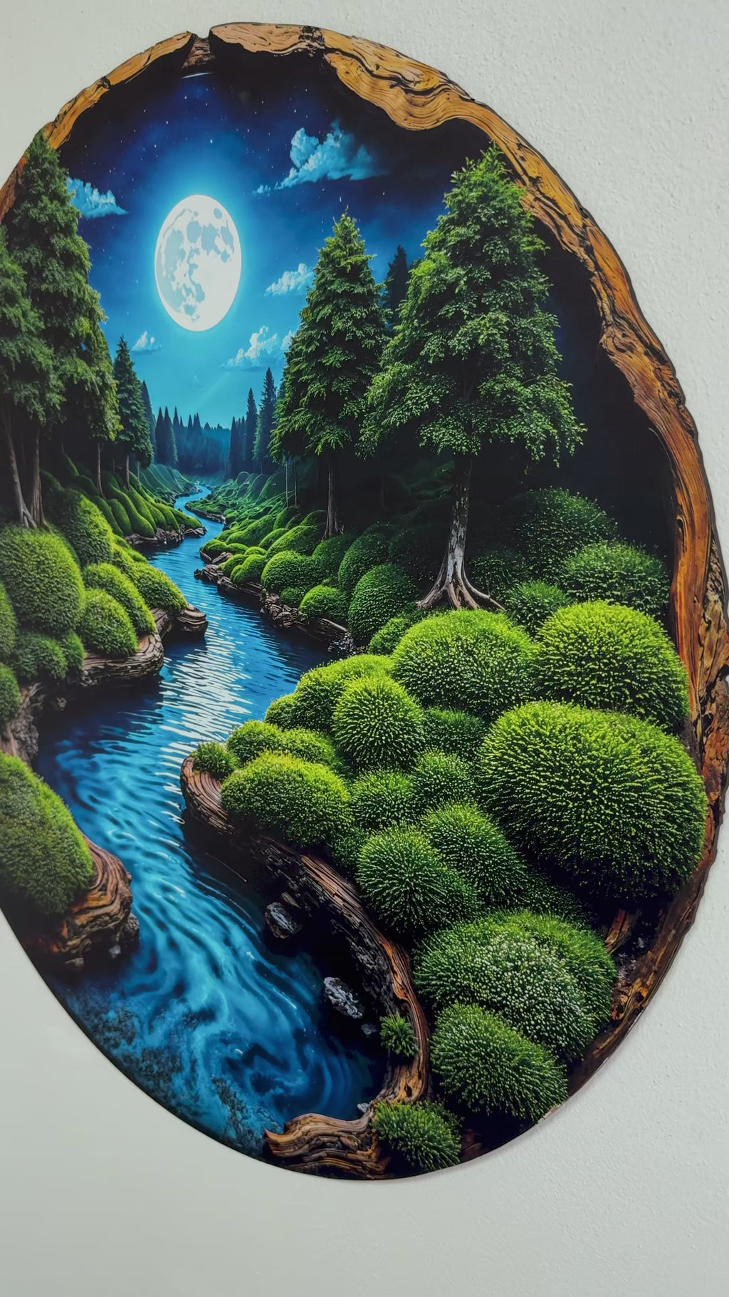 Měsíční obraz – Mechová LED tištěná alternativa 🌿🖼️
