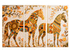 Barevný dřevěný obraz – 3dílný obraz – Zlatí koně