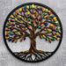 Dřevěná nástěnná dekorace - Barevný strom života – Kruh štěstí